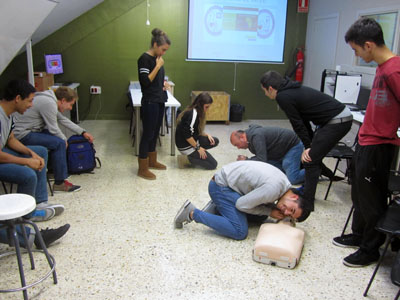 | Osasun Larrialdietako 2. mailako ikasleak gelaz gela dabiltza egun hauetan, lehen laguntzen inguruko saio praktikoak eskainiz. Bihotz-birikietako suspertzea eta DESAren erabileraren inguruko azalpenak ematen ari dira bereziki, baina lehen laguntzen inguruko edozein zalantza argitzeko ere gai direla demostratu dute. Saioetan parte hartu duten beste zikloetako ikasleak oso gustura agertu dira esperientziarekin. Eskerrak eman agertu duten prestutasunagatik. Benetako profesionak izaten ari dira.