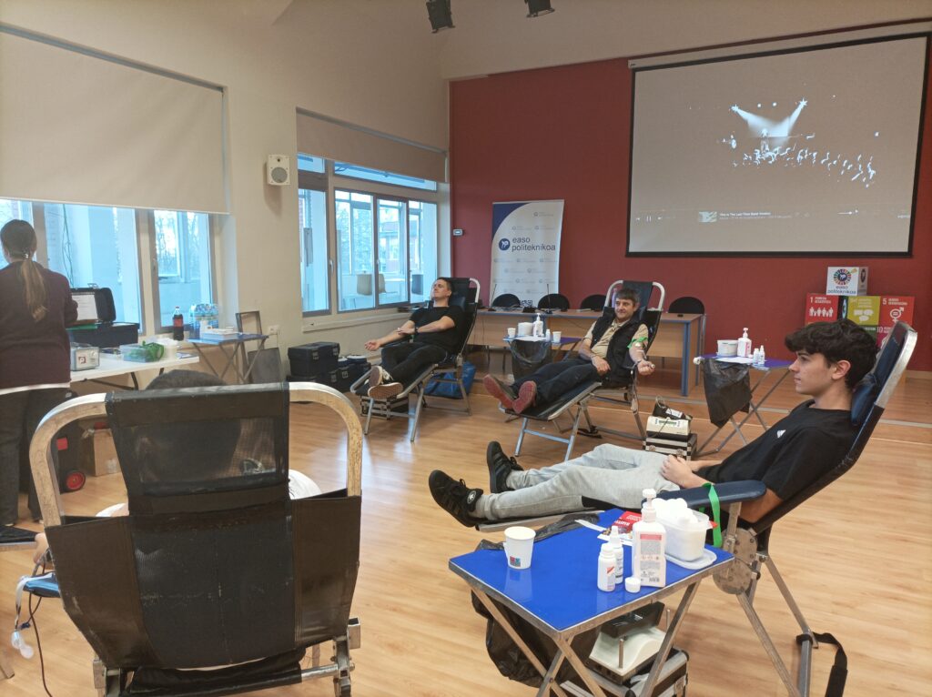Urtarrilaren 30 eta 31ean, balioak 4.0 ekimenaren baitan, solidaritatea sustatuz, odol emaileak etorri ziren Easo Politeknikora. Oraingo honetan, 30ean lehen aldiz, arratsaldez ere odola emateko aukera izan zen. Odol emaileetatik jakinarazi digute oso emaitza onak izan zirela: 116 pertsona gerturatu ziren odola ematera, 83k eman ahal izan zuten, eta 42 pertsonek lehen aldiz eman zuten odola. Zorionak eta eskerrik asko guztioi zuen parte hartzeagatik. Jarrai dezagula keinu txikiekin solidaritatea sustatzen.
