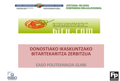 | El pasado día 16 de octubre se celebró en Easo Politeknikoa la presentación del Servicio de Mediación de Aprendizaje de Donostia, en el cual participaron: el alumnado de 2º curso de todos los ciclos, Irune Beloki (jefa de estudios y miembro del Departamento de FOL) y Saioa Larruskain (mediadora de aprendizaje). El objetivo del taller era dar a conocer el Servicio de Mediación y el significado del aprendizaje a lo largo de la vida. Para ello, el Servicio de Mediación de Aprendizaje dio respuesta a las siguientes preguntas mediante una presentación: