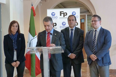 | El Lehendakari Iñigo Urkullu, la Consejera de Cultura Cristina Uriarte y el Viceconsejero de FP Jorge Arévalo han visitado esta mañana Politécnico Easo. Tras recorrer las diferentes instalaciones y espacios del centro se reunieron con los jefes de departamento para compartir experiencias y conocer de primera mano la realidad y los nuevos retos de la FP vasca. (Vídeo)
