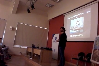 | Gorka Santalla reflexionó sobre “la relación de la alimentación y la actividad física con el dolor” en una formativa y amena charla con el alumnado de varios ciclos formativos del ámbito de la salud y el bienestar en el aula magna del centro. El fisioterapeuta relacionó y explicó con datos y experiencias la interrelación de la alimentación y la actividad física, y de la autogestión del estrés, con el bienestar… ahora que cada uno/a lo tenga en cuenta tanto a nivel particular como en su ámbito profesional.