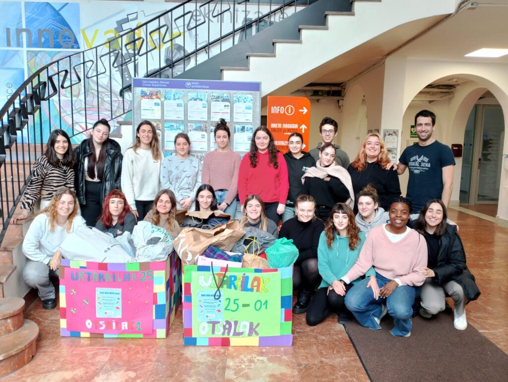 El alumnado del ciclo de Integración Social de Easo Politeknikoa ha recogido ropa de invierno para la asociación Haurralde, destinada a niños y mujeres en situación de vulnerabilidad.
