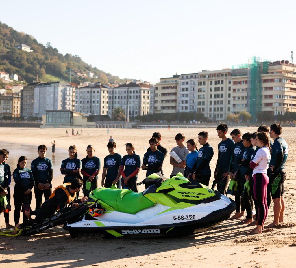 El alumnado de segundo curso del Ciclo de Técnico en el Medio Natural y de Tiempo Libre ha participado en un taller monográfico de rescate con moto de agua en la escuela de socorrismo ZMARE de la playa de la Zurriola.