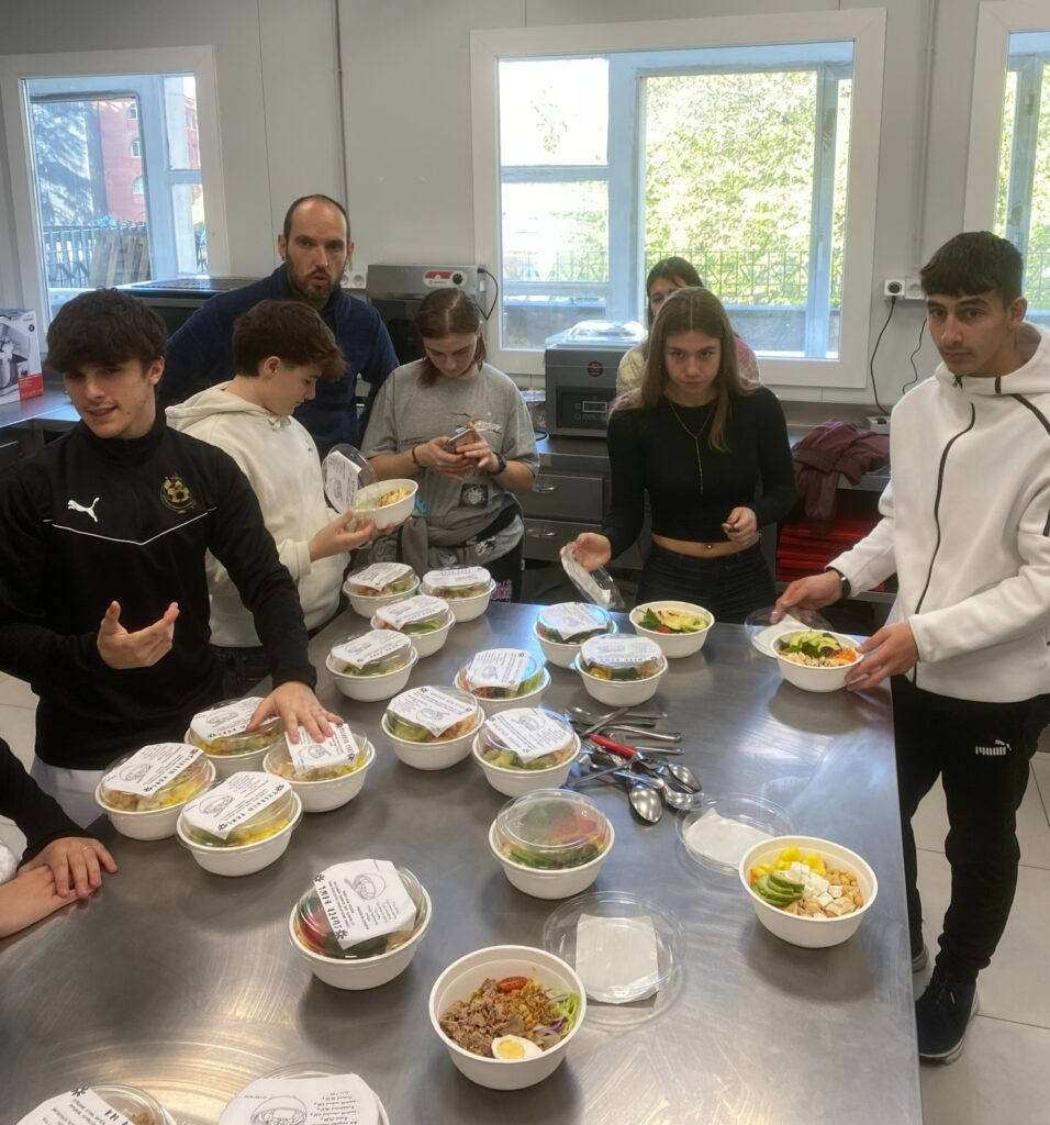 Por ello, este año hemos analizado las necesidades nutricionales de varios estudiantes del ámbito deportivo (Intza del Teso, ciclista; Pablo Campoo, futbolista; y Peru Gorostiza, escalador). Teniendo en cuenta sus necesidades, el alumnado del ciclo de Comercialización de Alimentos ha creado varios POKE BOWLS.