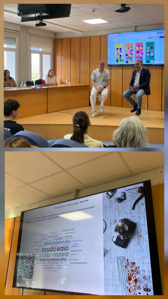 El 28 de noviembre, el alumnado de 1º de Laboratorio Clínico participó en un encuentro sobre el Fentanilo en la Facultad de Enfermería de la UPV/EHU. Contamos con las intervenciones de Félix Zubia (jefe de la UCI del Hospital Donostia) y Josean Fernández (presidente de Aergi), quienes ofrecieron dos perspectivas diferentes y profundas sobre esta realidad. Este encuentro se enmarca dentro del proyecto de innovación educativa sobre el fentanilo, en el que participa el departamento de Biotecnología Médica.